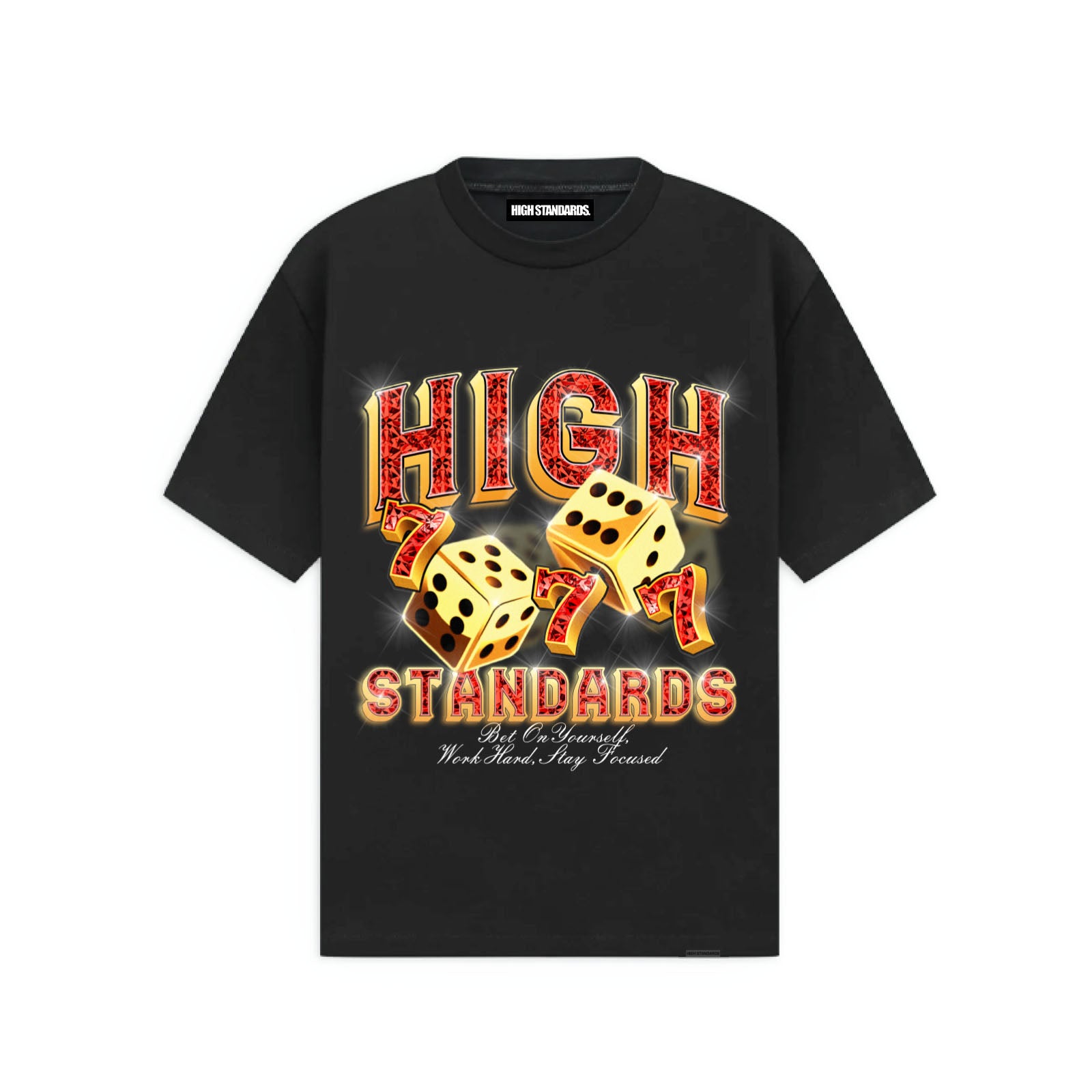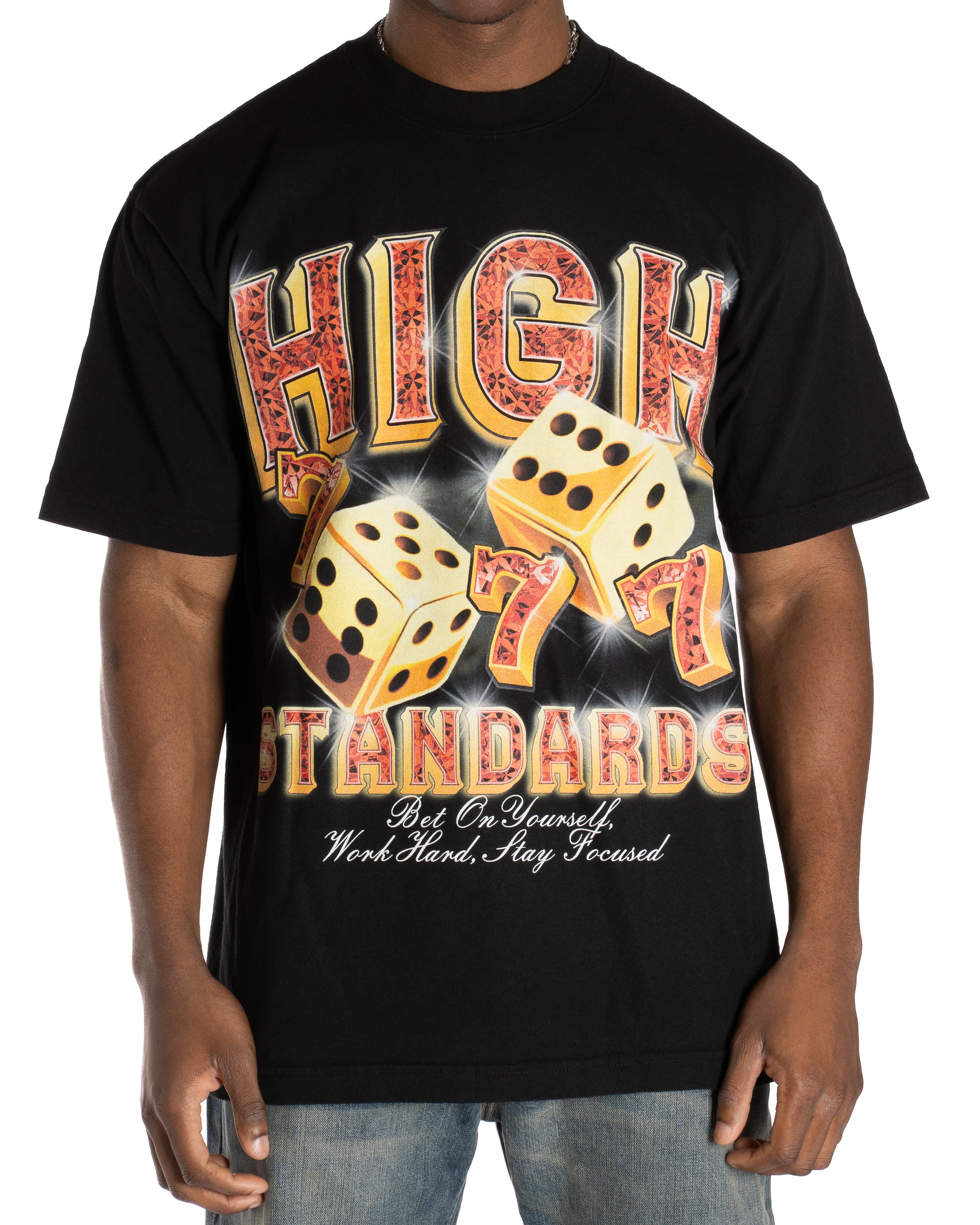 Custom-fit cut and sewn cotton short sleeve tee-shirt with High Standards Bet On Yourself Logo printed on the front and HS trademark logo on the back.