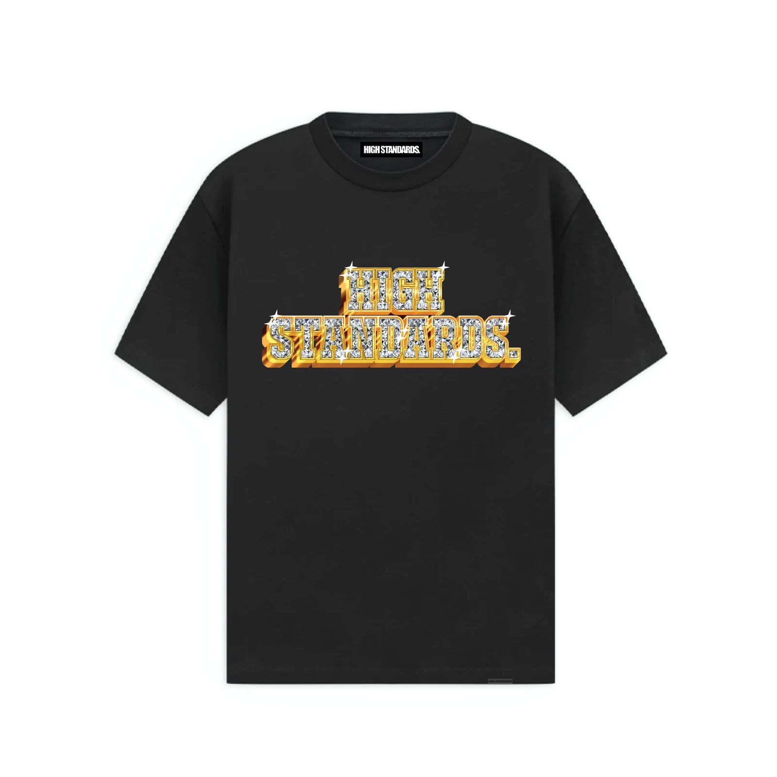 Limited Edition. Custom-fit cut and sewn cotton short sleeve tee-shirt with High Standards Diamond Logo printed on the front and "HARD WORK PAYS OFF" on the back.