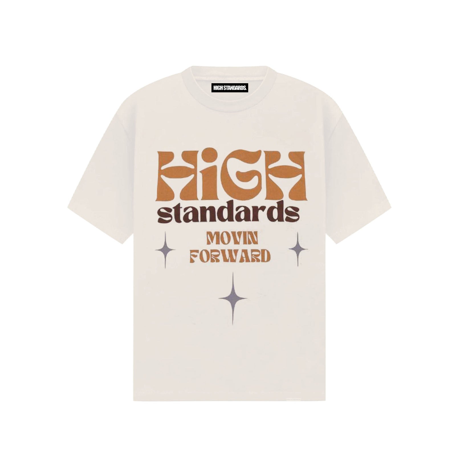 Limited Edition. Custom-fit cut and sewn cotton short sleeve tee-shirt with High Standards "MOVIN FORWARD" printed on the front.