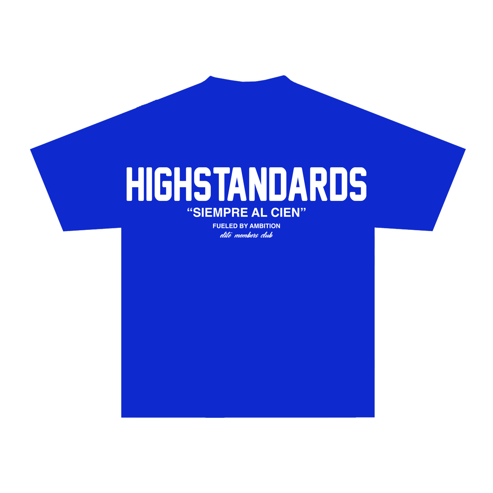Custom-fit cut and sewn cotton short sleeve tee-shirt with High Standards Siempre logo printed on the front and High Standards Siempre logo Printed on the back.