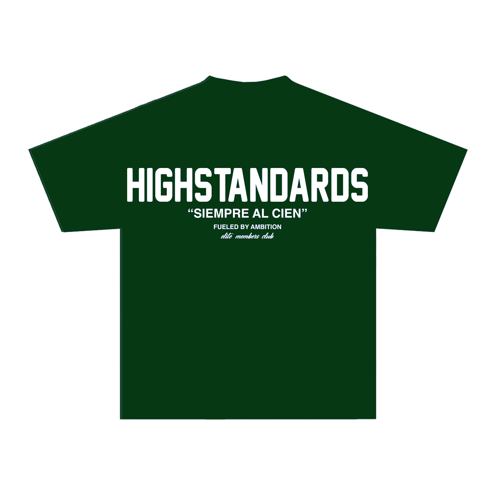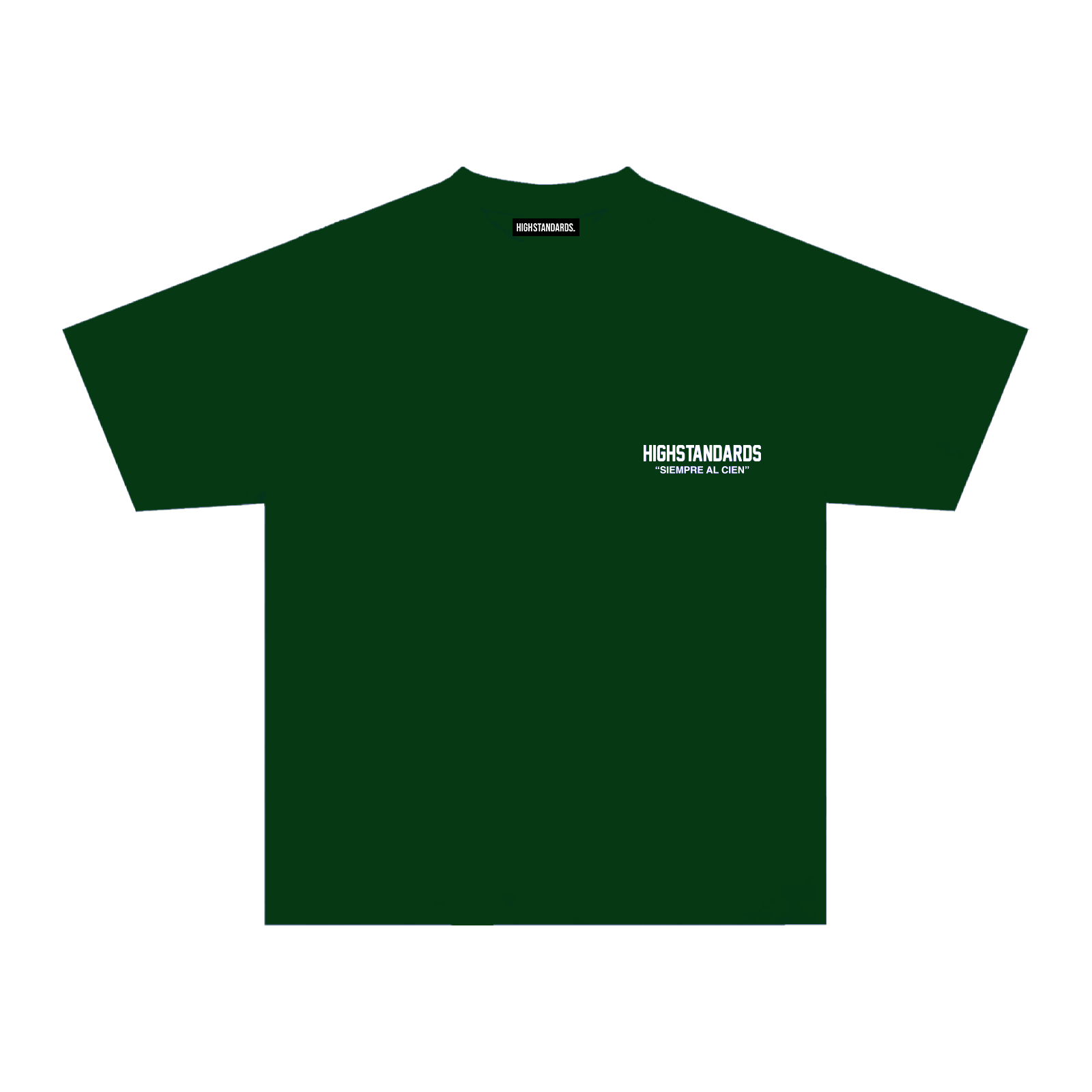 Custom-fit cut and sewn cotton short sleeve tee-shirt with High Standards Siempre logo printed on the front and High Standards Siempre logo Printed on the back.