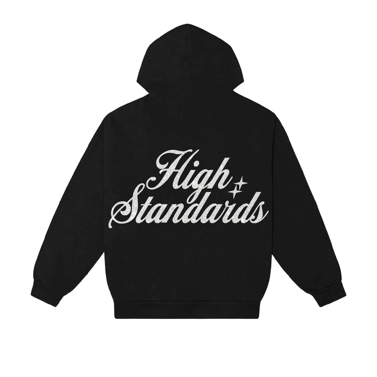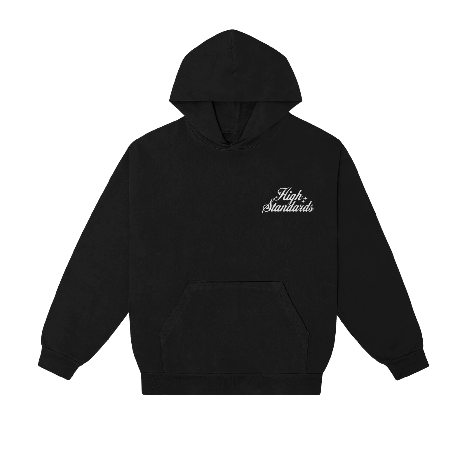 Custom-fit cut and sewn cotton hoodie with High Standards Puff print graphic on the front and HS Puff print logo on the back.