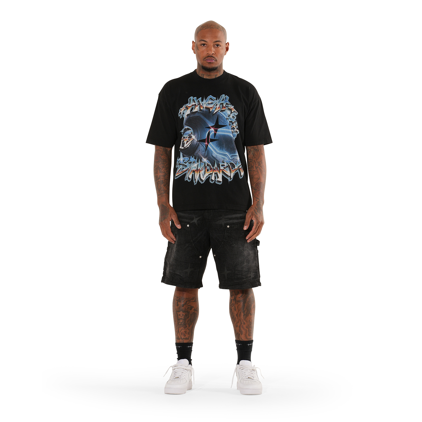 HS BLACK WASH STAR DENIM CARPENTER SHORT